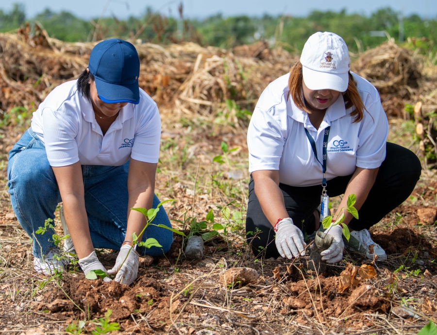 En la actividad, colaboradores de digecog junto al respaldo del Ministerio de Medio Ambiente plantaron mil árboles entre ellos: uvas de playa, penda, corazón de paloma y capa criolla.